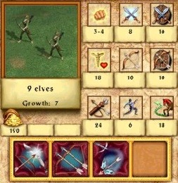 Alap Tulajdonságok: Dam: 3-4 Ma: 8 Md: 16 Hp: 18 Ra: 16 Rd: 16 Sh: 24 Sp: 6 Mm: 18 Speciális Tulajdonságok: Ranged Ability: A lény távolról lő az ellenfélre, de közelharcban csak félsebzést ad, hacsak nincs neki Normal Meele Ability-ja. Shoots Twice: Lényünk kétszer lő, a második lövés az ellenfél védekezése után következik be. Ranged First Strike: Távharcban lényünk lő először és az ellenfél csak ez után védekezik. Cost: 190 Gold Growth: 7/week |